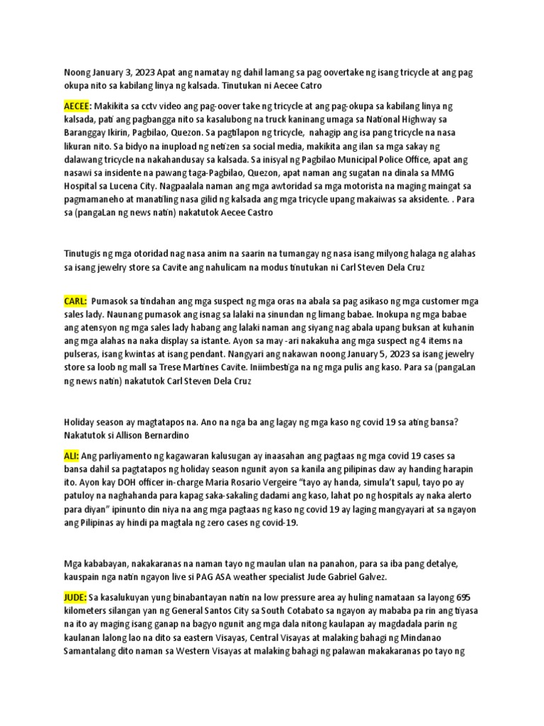 ng news natin) nakatutok Carl Steven Dela Cruz