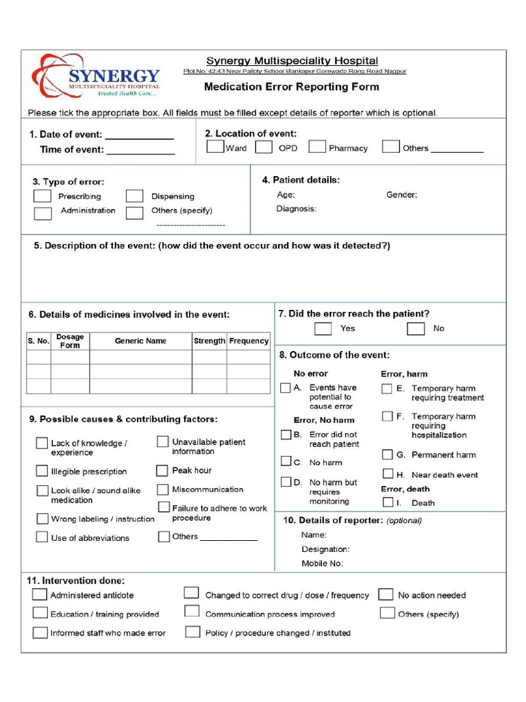 JS suensrnciariry ttosrriat Medication Error Reporting Form