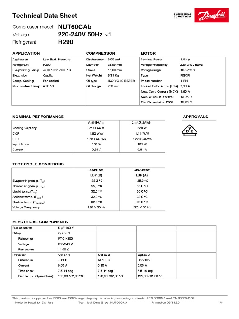 Made by Huayi for Danfoss Technical Data Sheet NUT60CAb Printed on 03/11/20 1/4