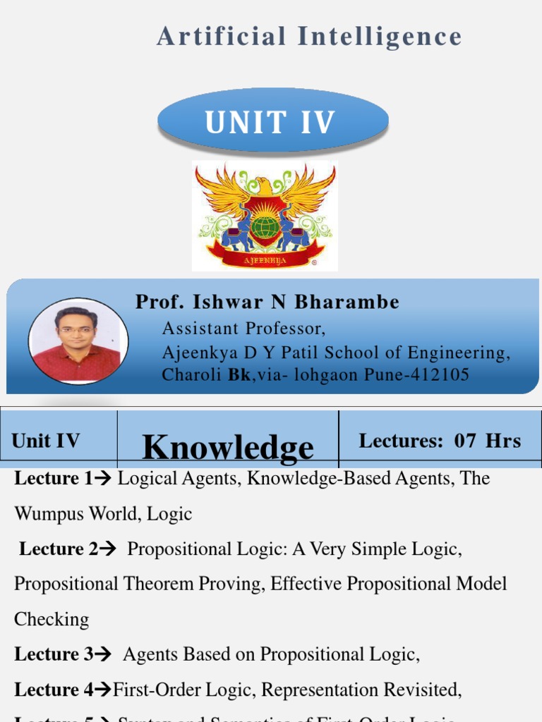 Lecture 1 Logical Agents, Knowledge-Based Agents, The