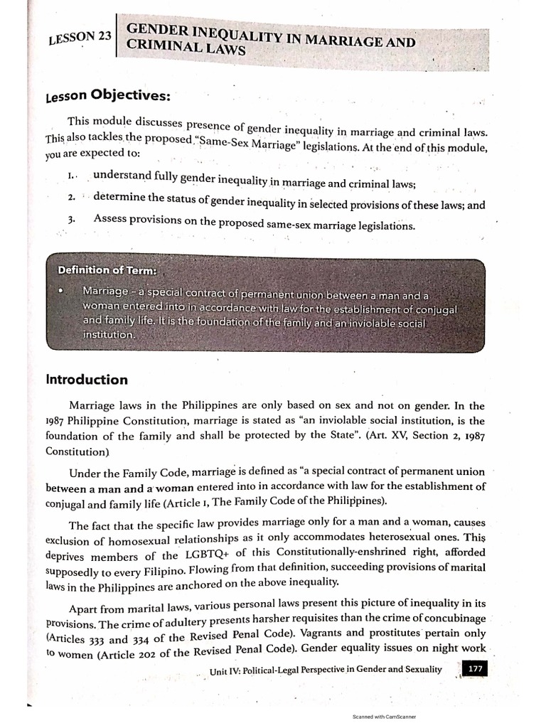 - Gender Inequality in Marriage and Criminal Laws