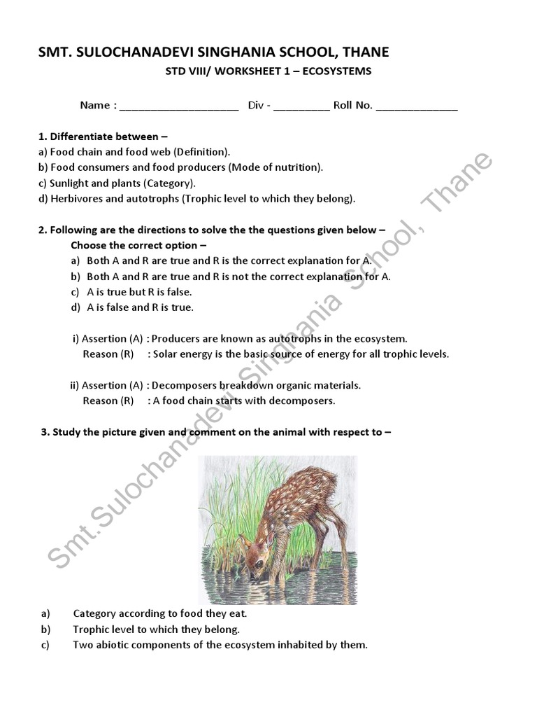 STD VIII/ WORKSHEET 1 – ECOSYSTEMS