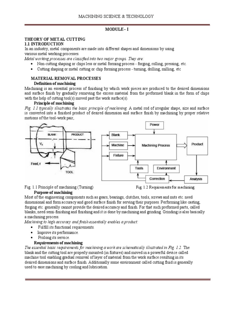 Fig. 1.1 Principle of machining (Turning) Fig. 1.2 Requirements for machining