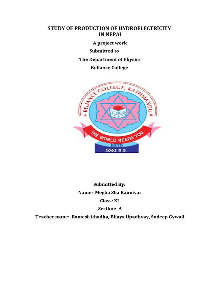 STUDY OF PRODUCTION OF HYDROELECTRICITY