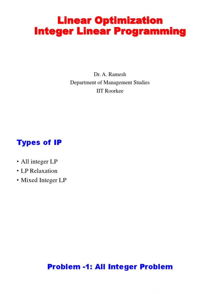 Problem -1: All Integer Problem