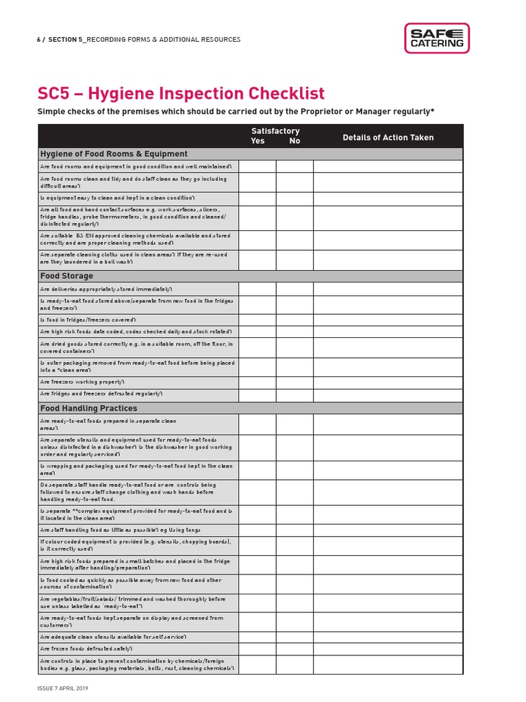 SC5 – Hygiene Inspection Checklist