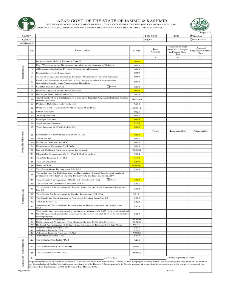 Name* Tax Year 2021 Resident