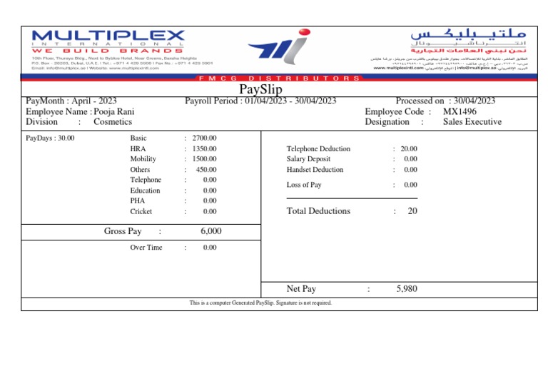 PayMonth : April - 2023 Payroll Period : 01/04/2023 - 30/04/2023 Processed on : 30/04/2023