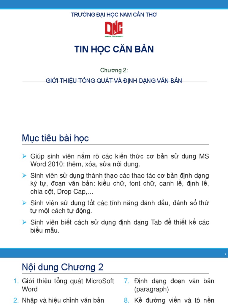 GIỚI THIỆU TỔNG QUÁT VÀ ĐỊNH DẠNG VĂN BẢN