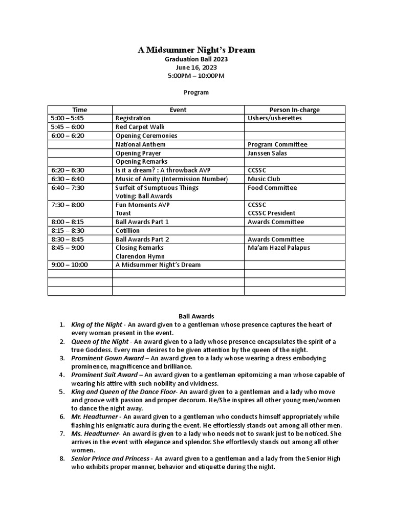 8. Senior Prince and Princess - An award given to a gentleman and a lady from the Senior High