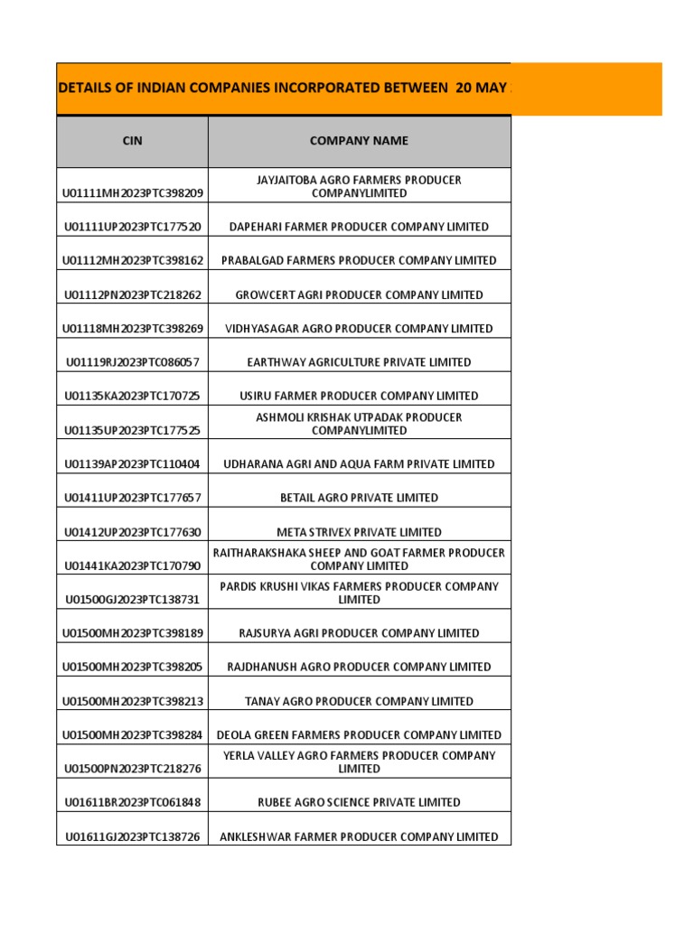 DETAILS OF INDIAN COMPANIES INCORPORATED BETWEEN 20 MAY 2023 TO 18 JUNE 2023
