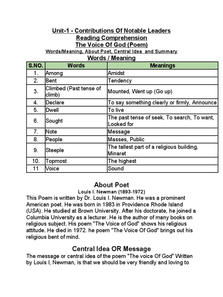 (i) Poem: The Voice Of God,