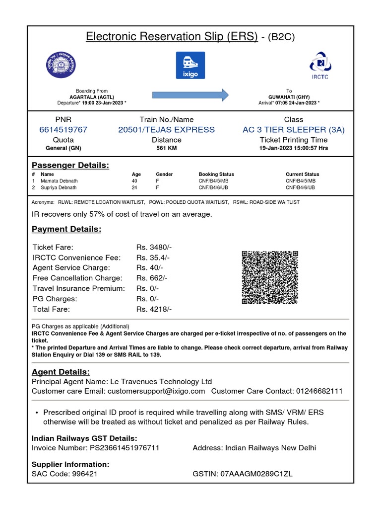 Electronic Reservation Slip (ERS) - (B2C)