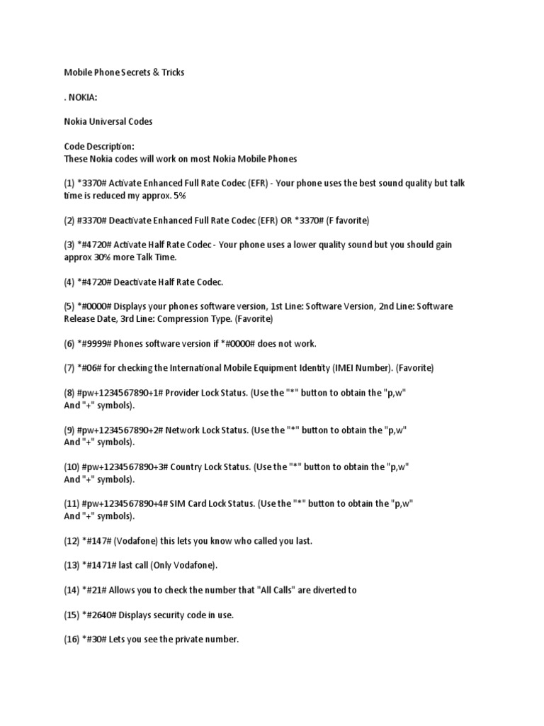 (3) *#4720# Activate Half Rate Codec - Your phone uses a lower quality sound but you should gain