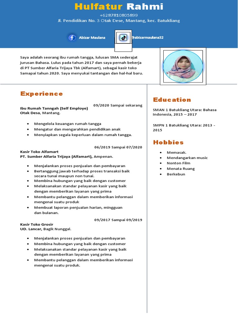jurusan Bahasa. Lulus pada tahun 2017 dan saya pernah bekerja