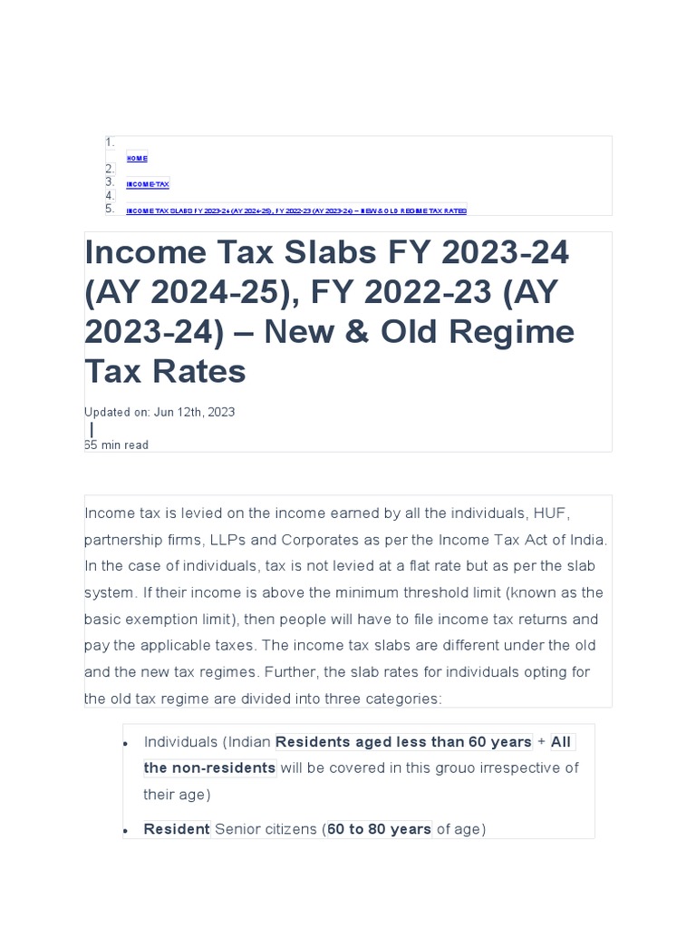 and the new tax regimes. Further, the slab rates for individuals opting for