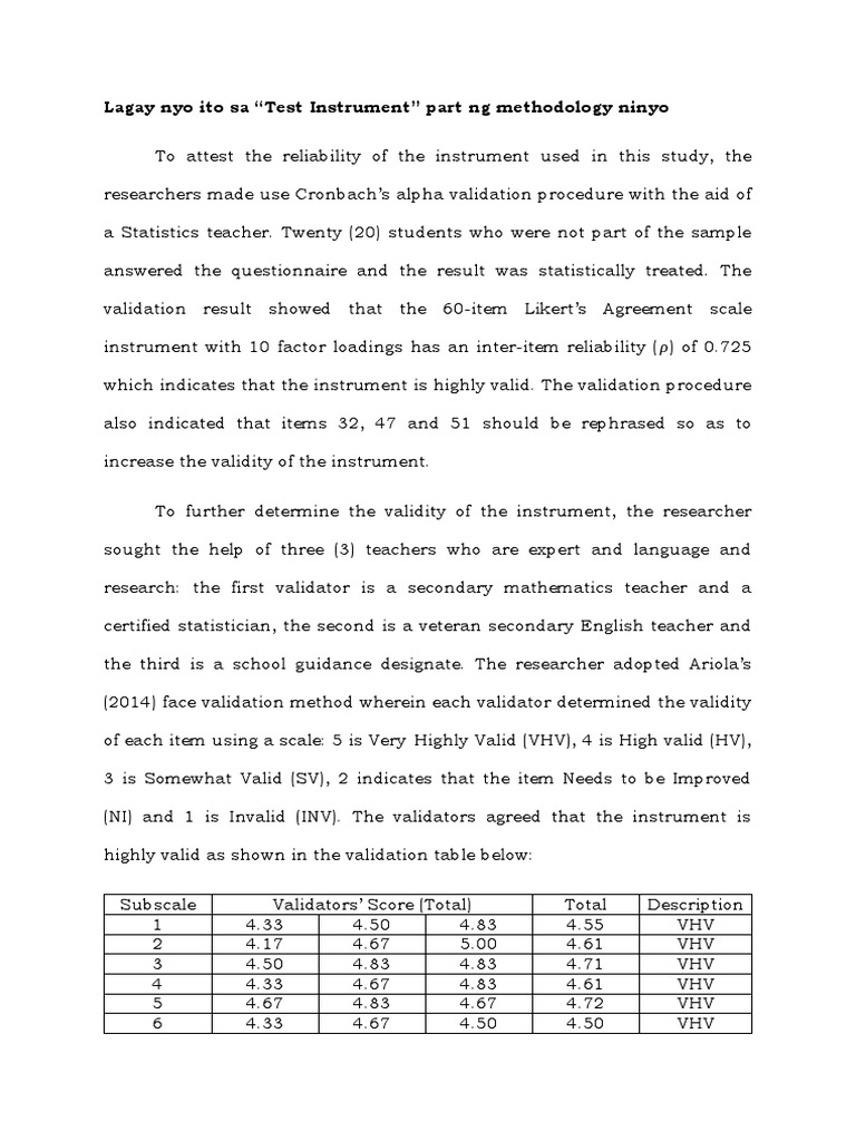 Lagay nyo ito sa “Test Instrument” part ng methodology ninyo