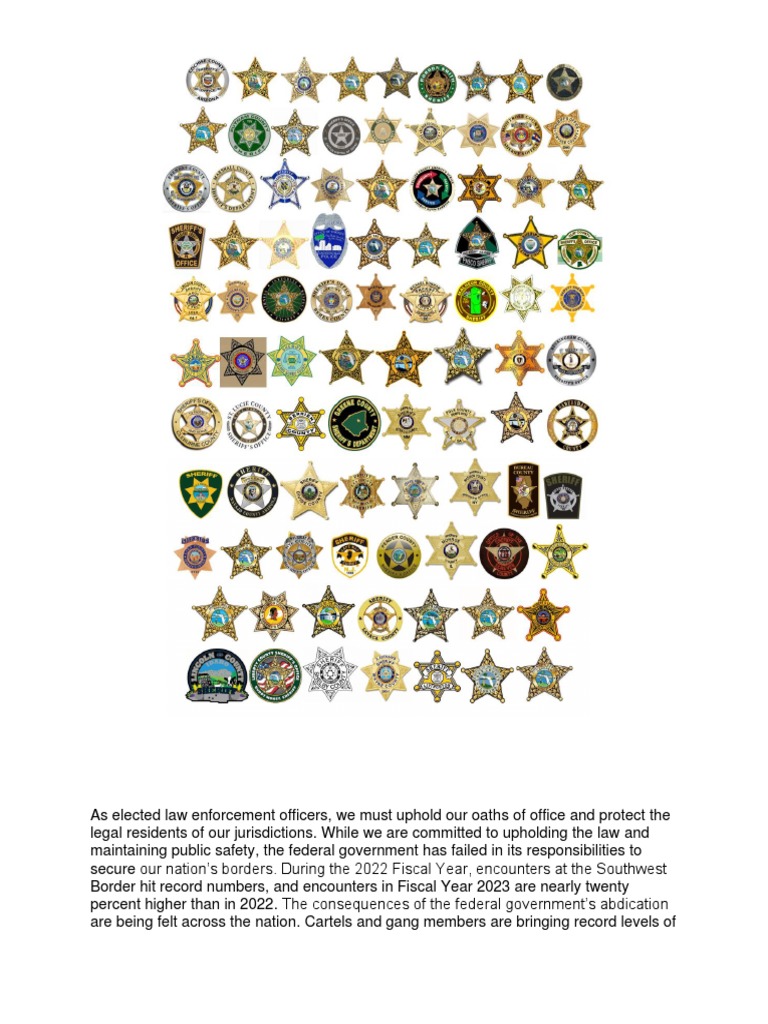 As elected law enforcement officers, we must uphold our oaths of office and protect the legal residents of our jurisdictions. While we are committed to upholding the law and maintaining public safety, the federal government has failed in its responsibilities to secure