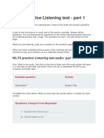 Listening practice test 1 page. The questions for part 2 are also shown on this page.