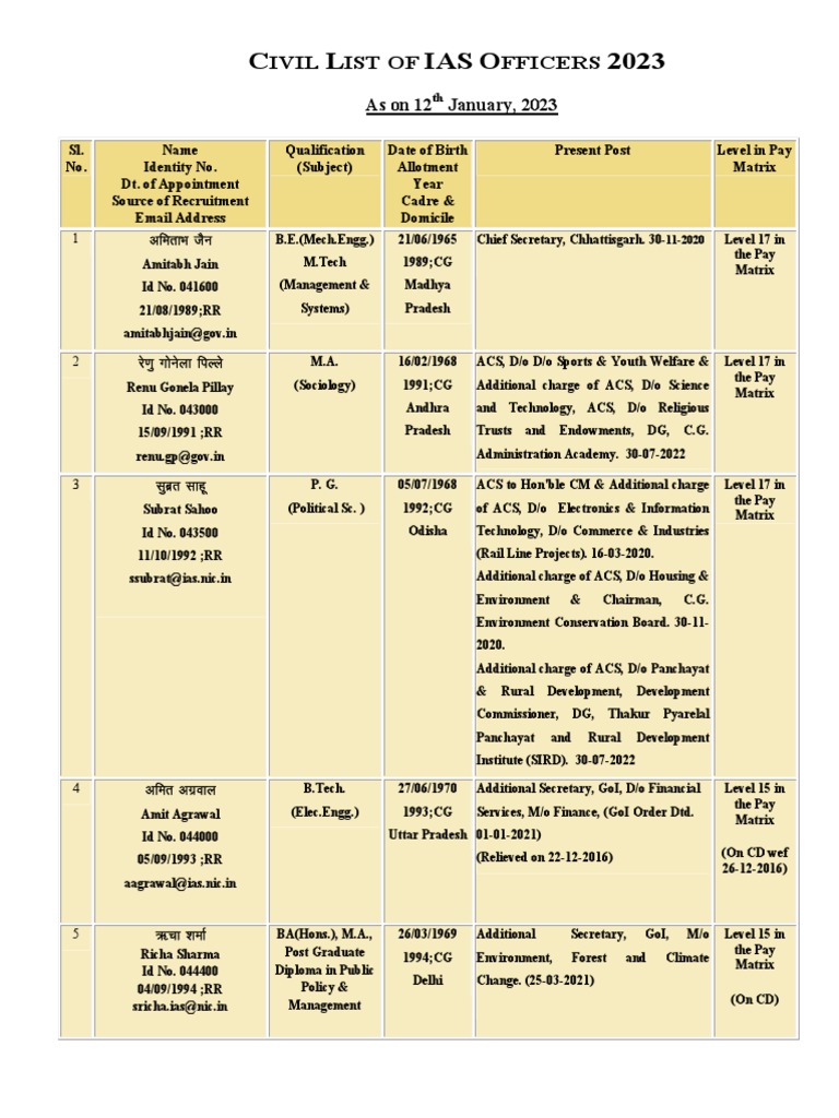 IAS Officers Civil List 2023