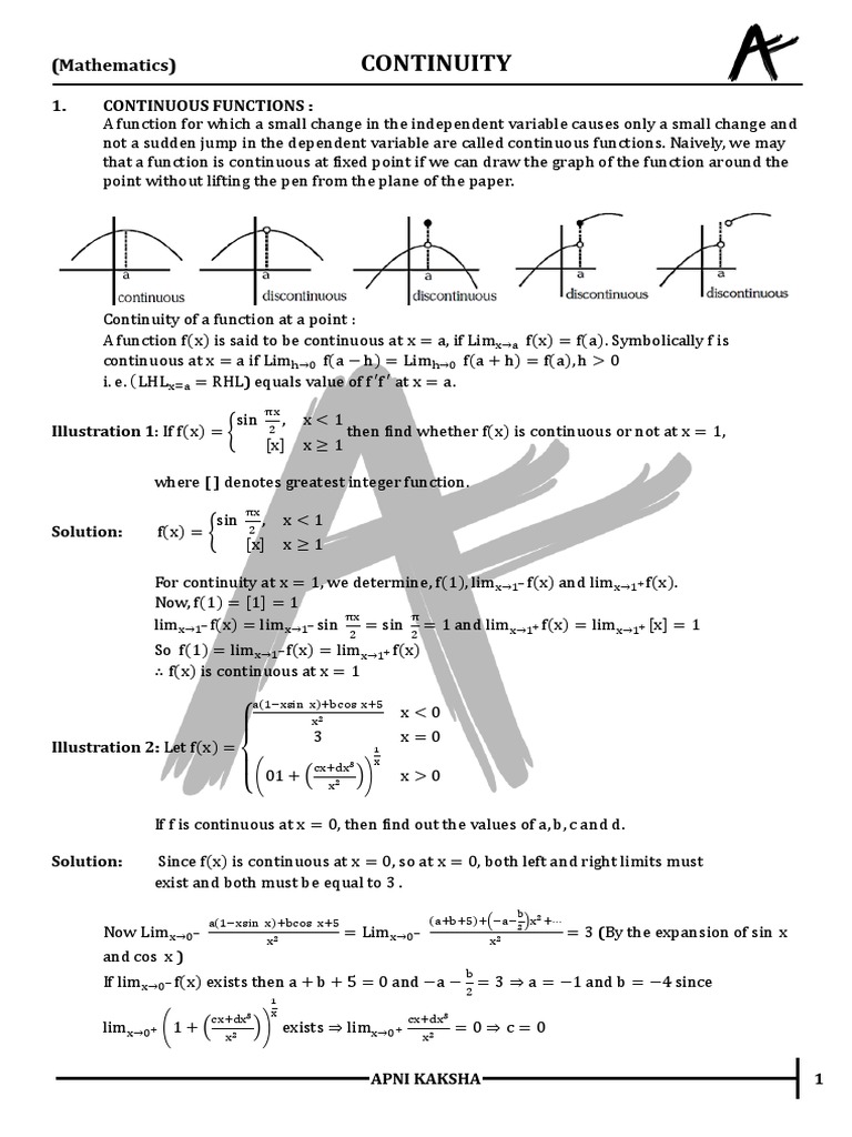 1. If f(x) = (x ≠ 0) is cont. at x = 0. Find A and B. Also find f(0).