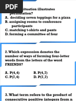 6. Which of the following situations illustrates combinations? D. forming a dance troupe with 12 members