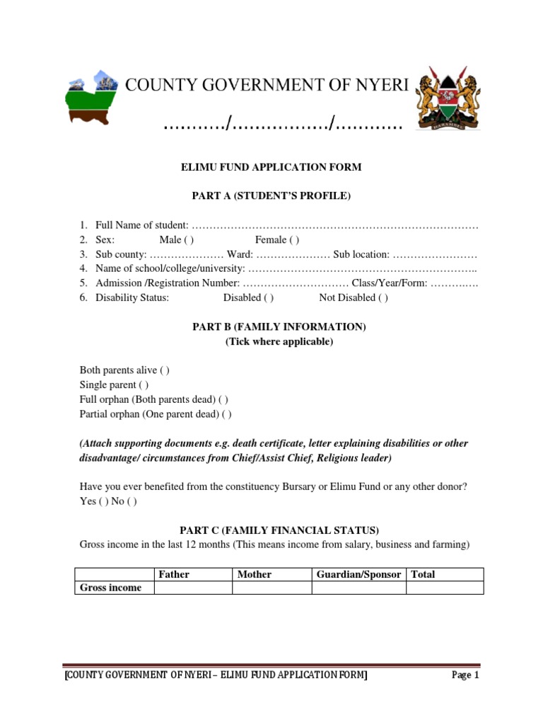 [COUNTY GOVERNMENT OF NYERI – ELIMU FUND APPLICATION FORM] Page 1