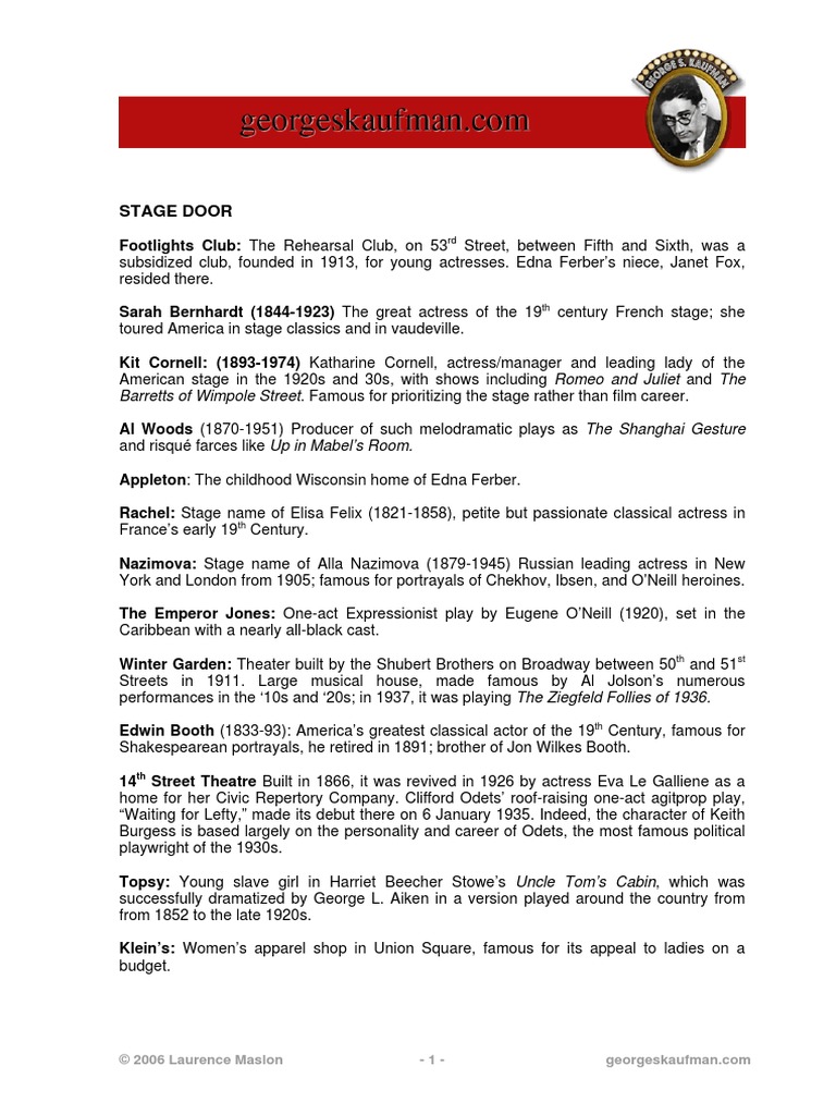 © 2006 Laurence Maslon -2- georgeskaufman.com