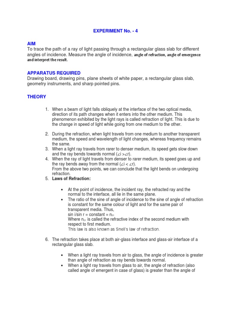 angles of incidence. Measure the angle of incidence, angle of refraction, angle of emergence