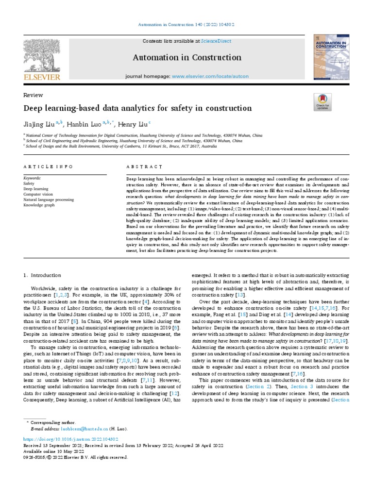 [118] B. Zhong, X. Pan, P.E.D. Love, J. Sun, C. Tao, Hazard analysis: a deep learning and and semantic rules, IEEE Trans. Eng. Manag. (2021), [Link]