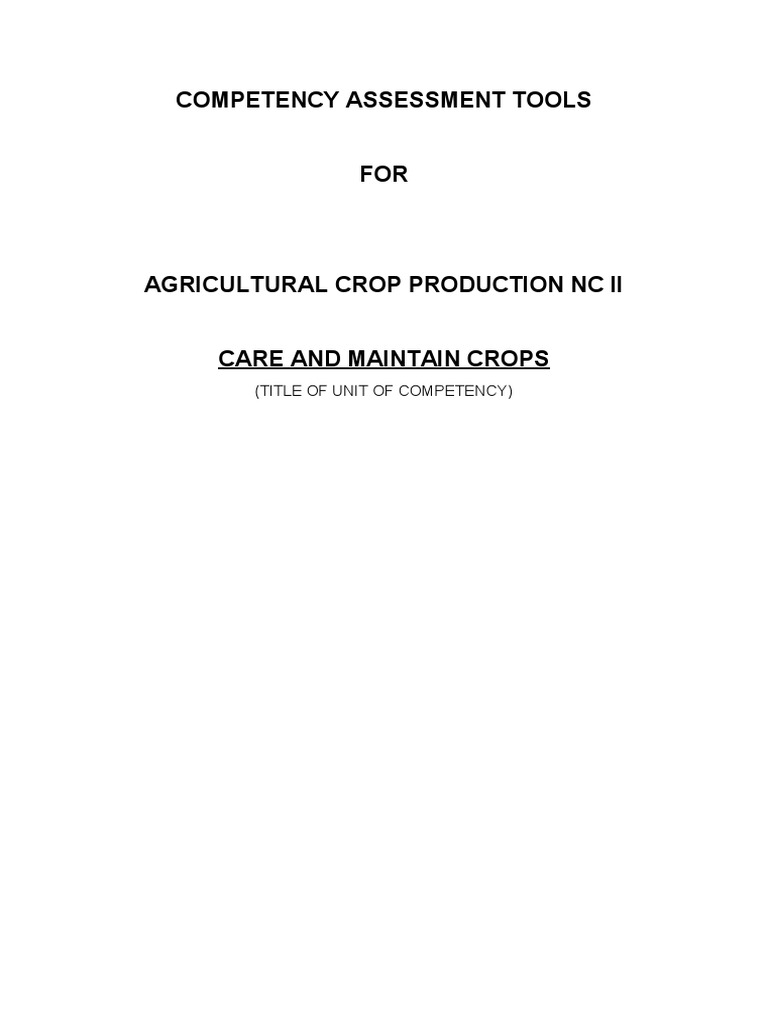 UNITOFCOMPETENCY CARE AND MAINTAIN CROPS