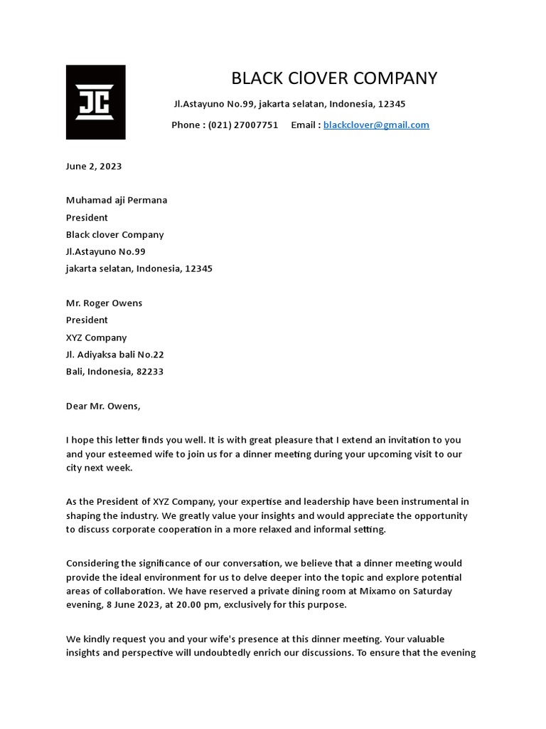We are genuinely excited about the opportunity to host you and your wife for this dinner