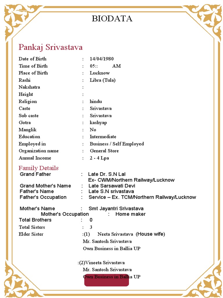 Sub caste : Srivastava