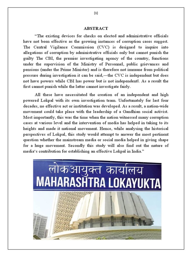 perspectives of Lokpal, this study would attempt to answer the most pertinent