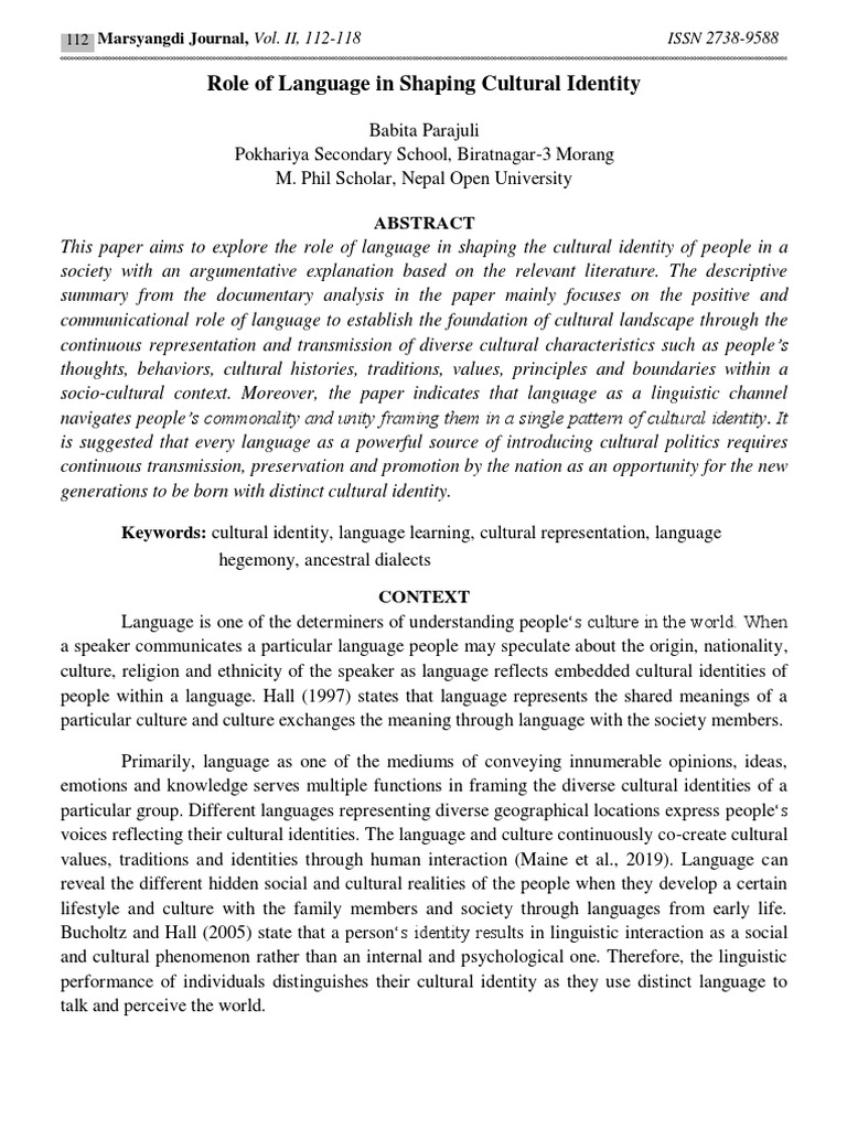 This paper aims to explore the role of language in shaping the cultural identity of people in a