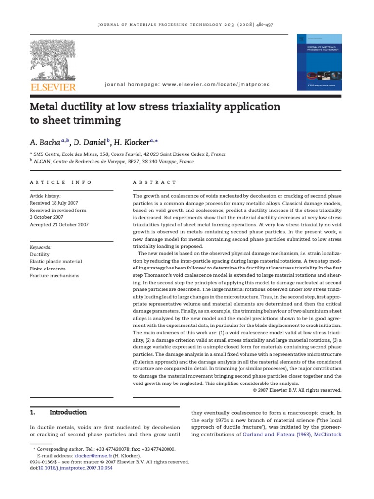damage parameters. Finally, as an example, the trimming behaviour of two aluminium sheet