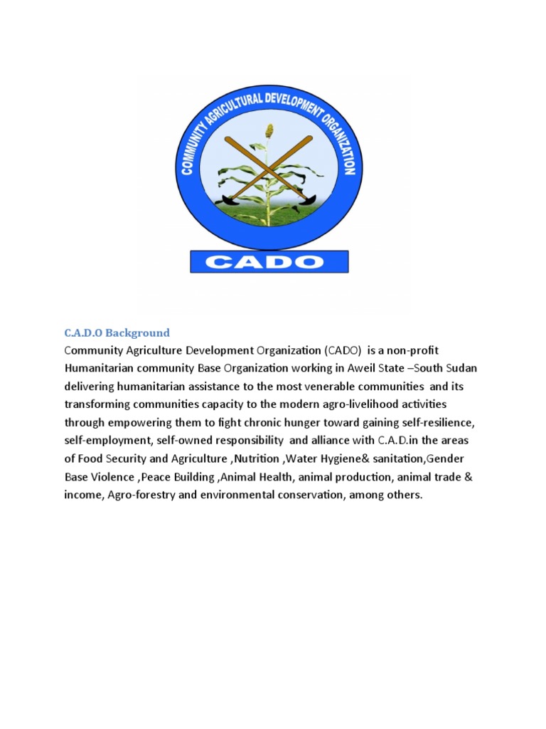 C.A.D.O will be operating in all five (5) counties of Aweil state and others states base on the funding of