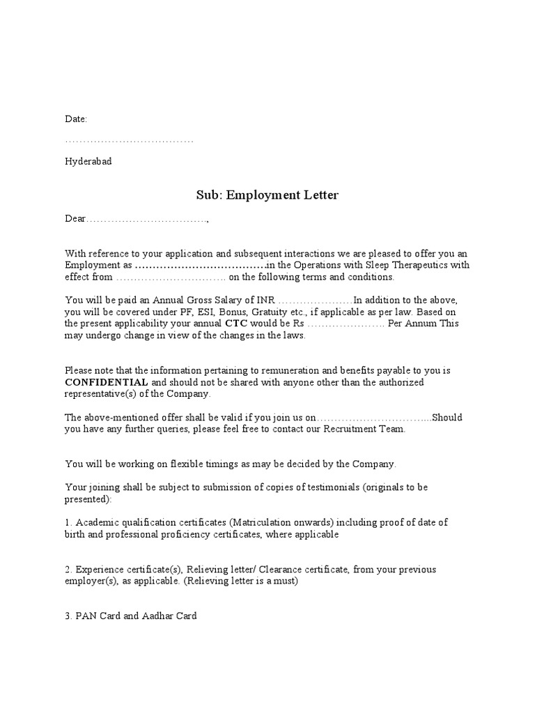 You will be paid an Annual Gross Salary of INR …………………In addition to the above,