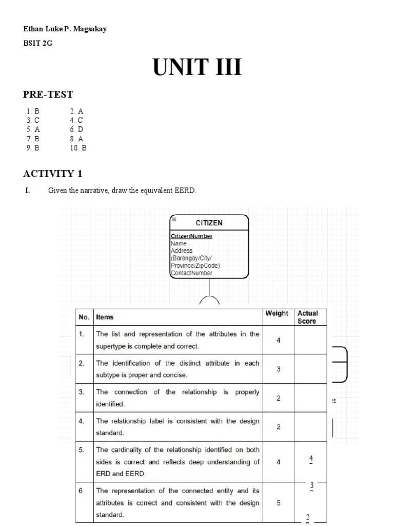 I. Draw the equivalent EERD describe in the narrative. Show all the