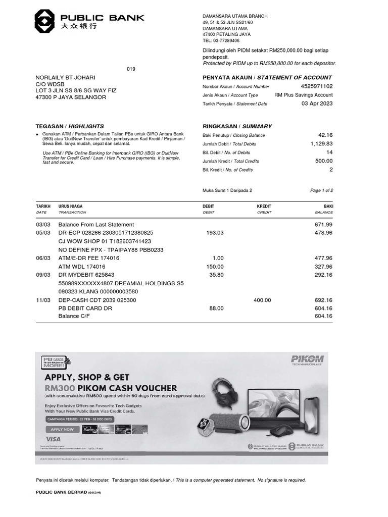 Tarikh Penyata / Statement Date 03 Apr 2023
