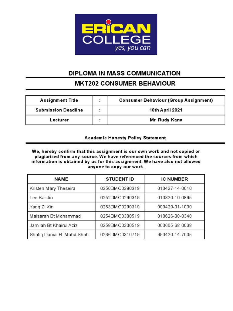 Assignment Title : Consumer Behaviour (Group Assignment)