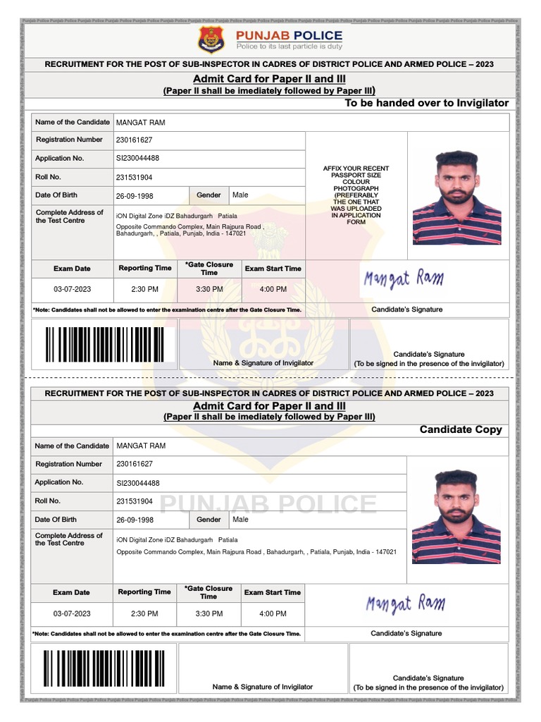 Paper II and III without the Admit card for Paper II and III under any circumstances. Candidates without photograph on the Admit