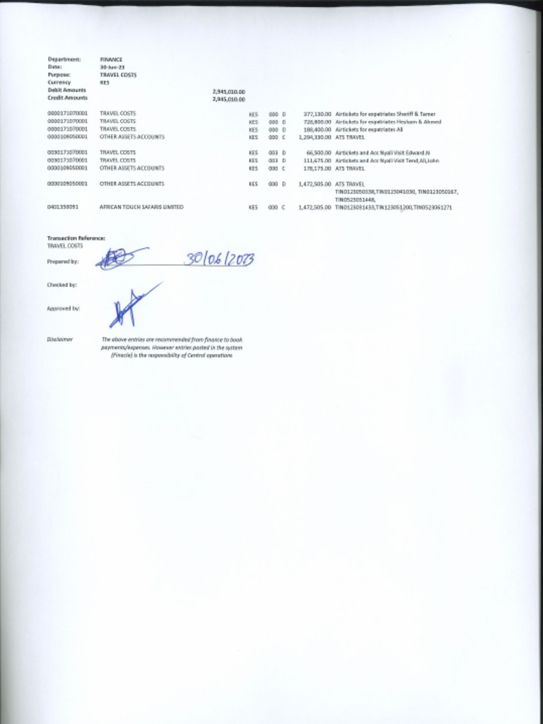 (One staff member Edward Waweru from the Operations department wil be traveling fo Nya foreieve the