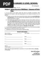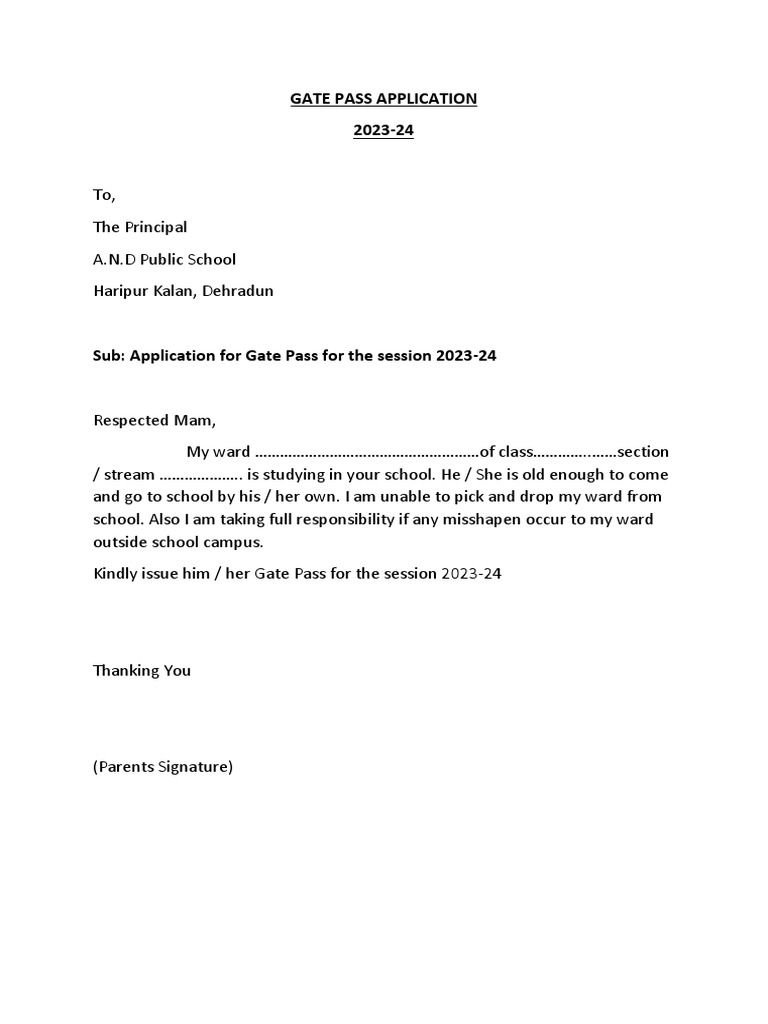 school. Also I am taking full responsibility if any misshapen occur to my ward