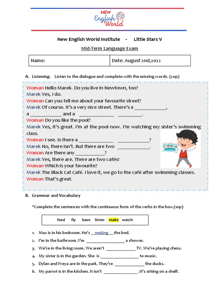 A. Listening. Listen to the dialogue and complete with the missing words. (20p)