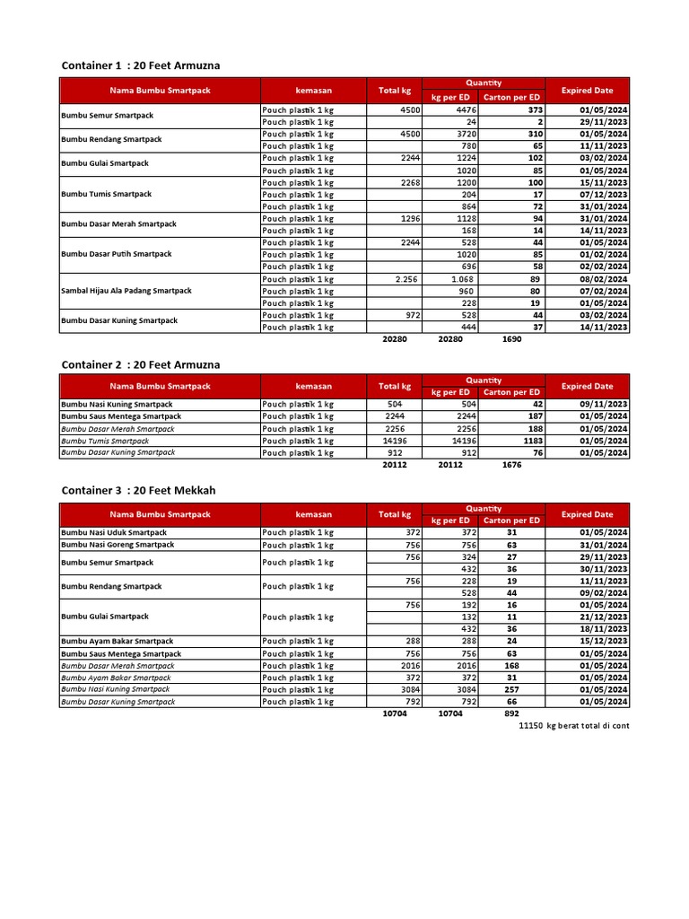Nama Bumbu Smartpack kemasan Total kg Expired Date