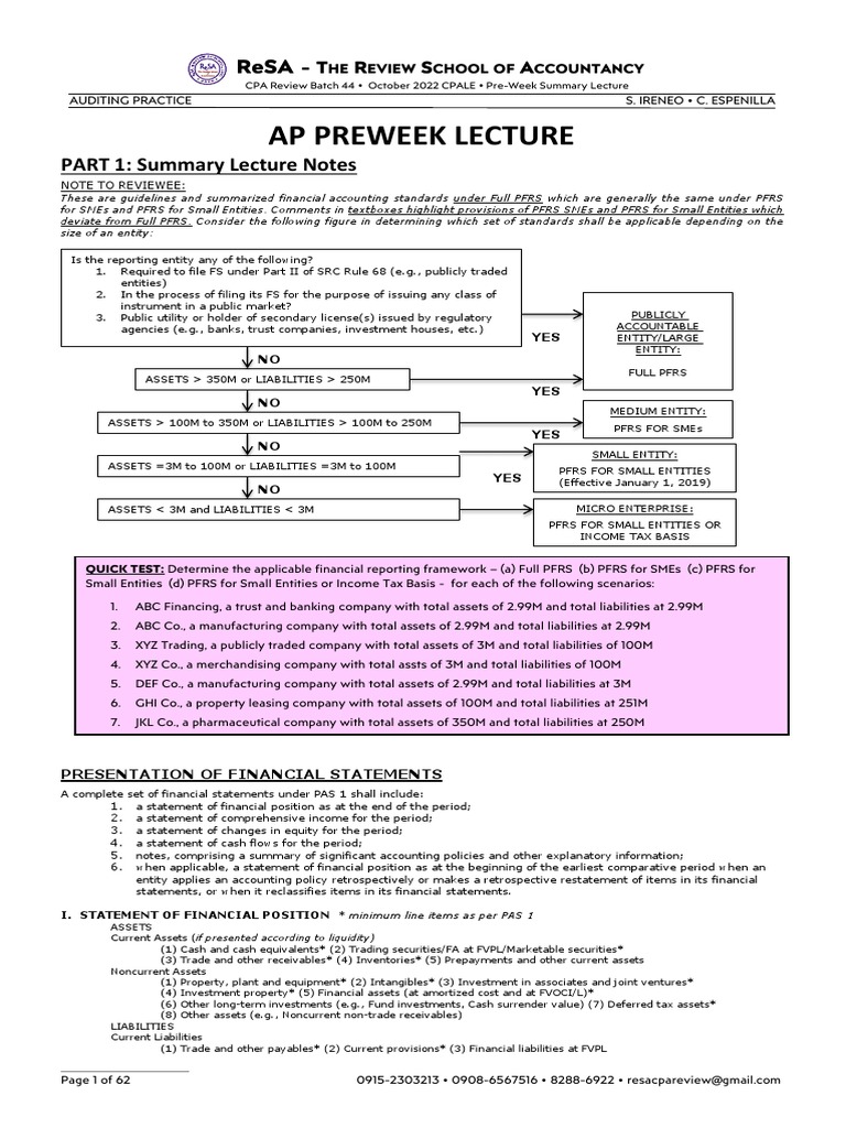CPA Review Batch 44 October 2022 CPALE Pre-Week Summary Lecture