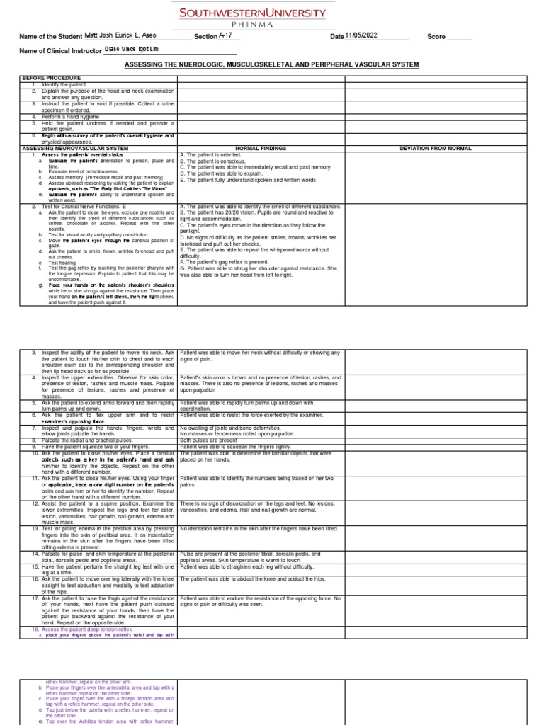 ASSESSING THE NUEROLOGIC, MUSCULOSKELETAL AND PERIPHERAL VASCULAR SYSTEM