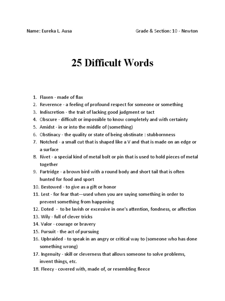 25 Difficult Words