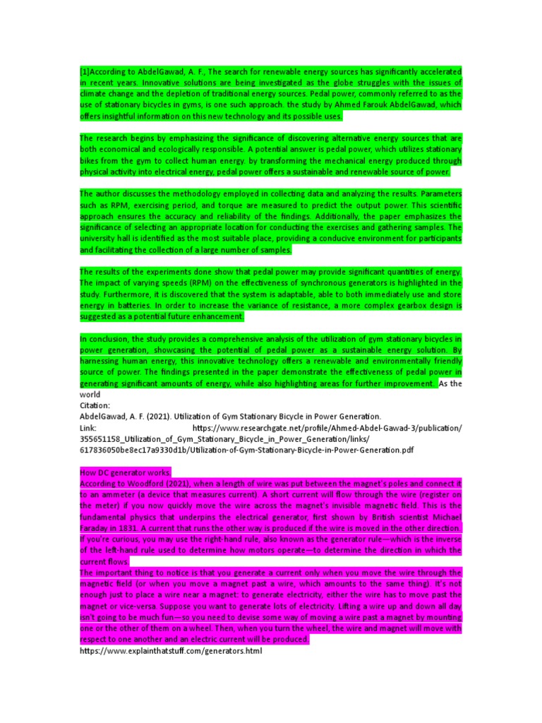 [2] In a study conducted by Kumar and Kulkarni (2019), the energy generated by pedaling a bicycle can